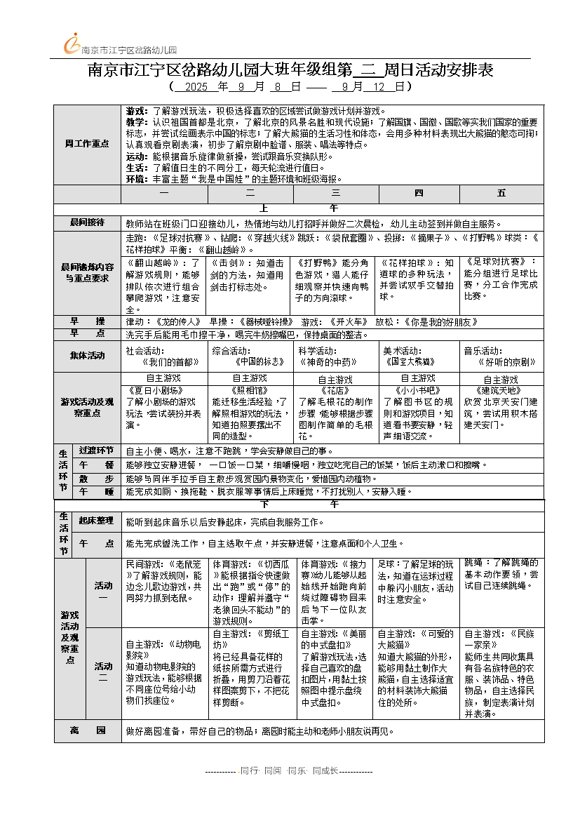下一篇(大班)2025-2026-1第3周幼儿活动安排