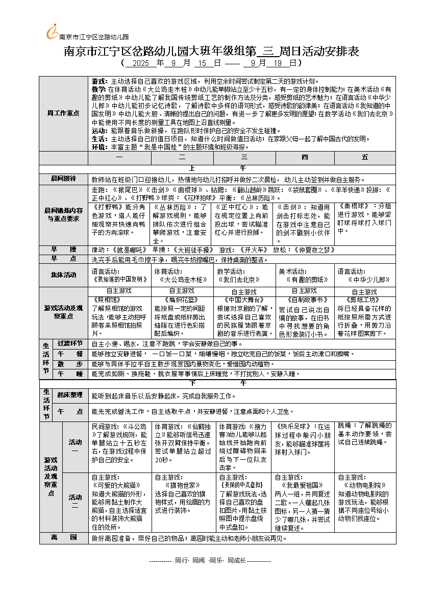 下一篇(大班)2025-2026-1第4周幼儿活动安排