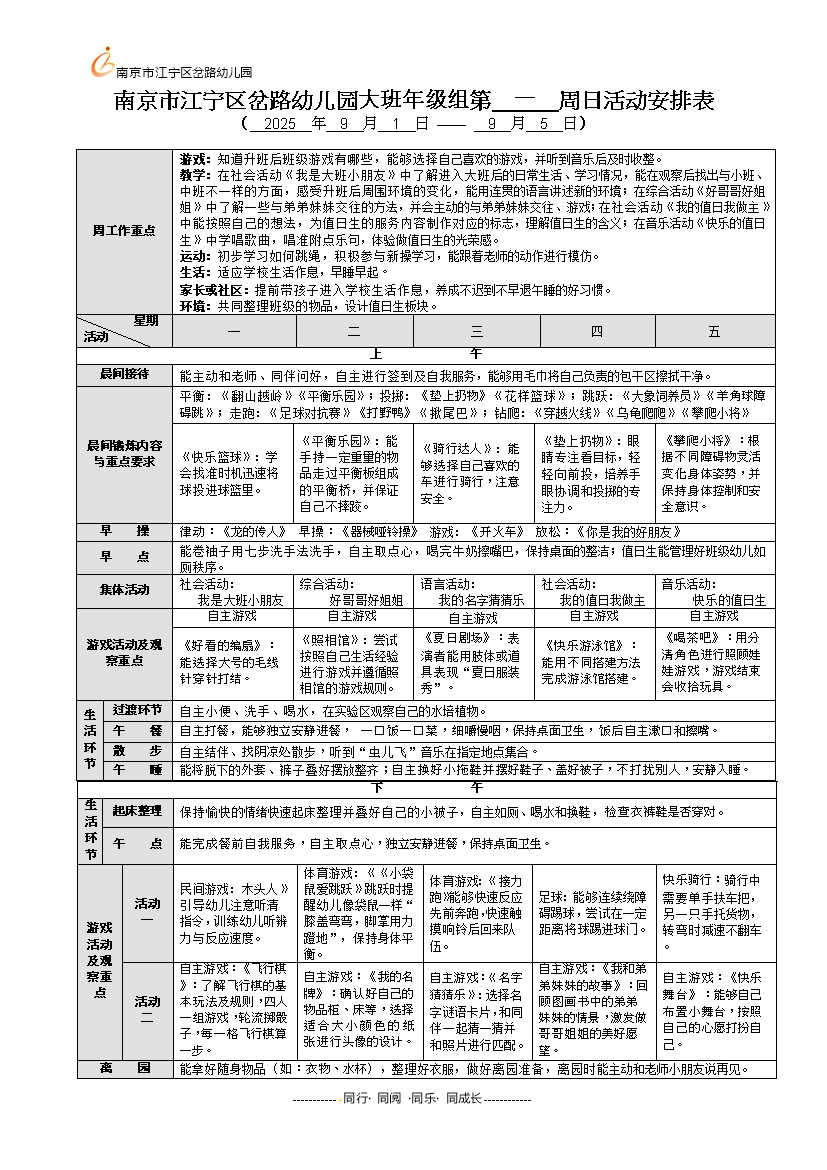 下一篇(大班)2025-2026-1第6周幼儿活动安排