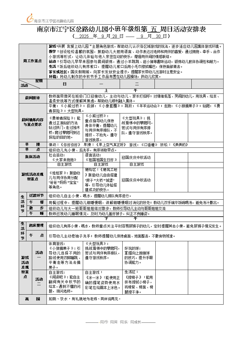 下一篇(小班)2025-2026-1第6周幼儿活动安排