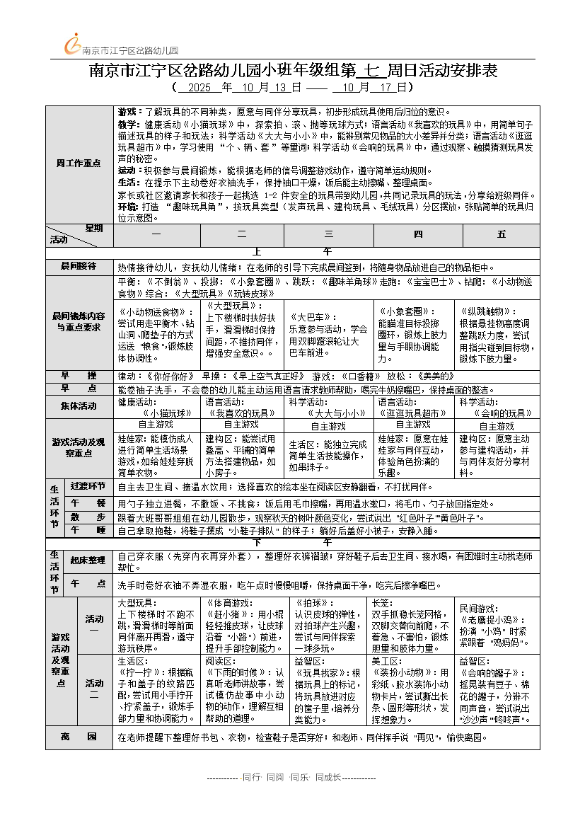 上一篇(小班)2025-2026-1第6周幼儿活动安排