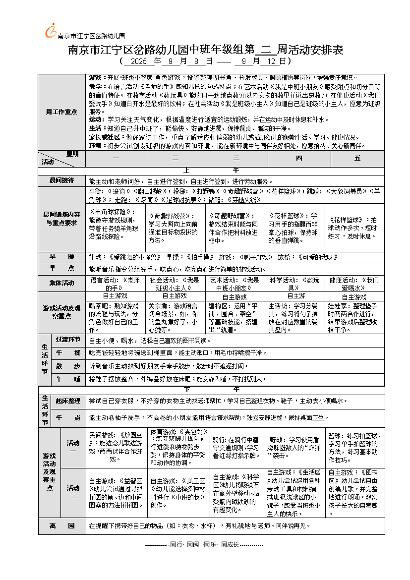 下一篇(中班)2025-2026-1第3周幼儿活动安排