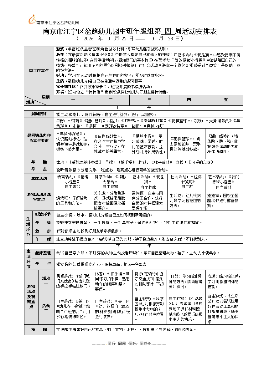 下一篇(中班)2025-2026-1第5周幼儿活动安排