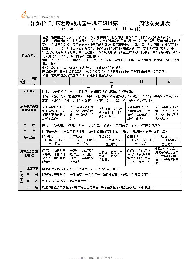 下一篇(小班)2025-2026-1第10周幼儿活动安排
