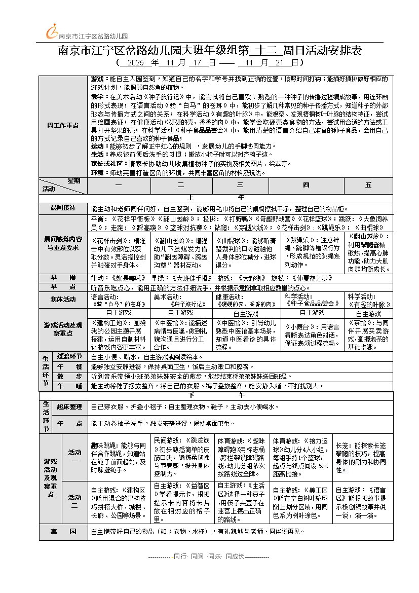上一篇(大班)2025-2026-1第11周幼儿活动安排