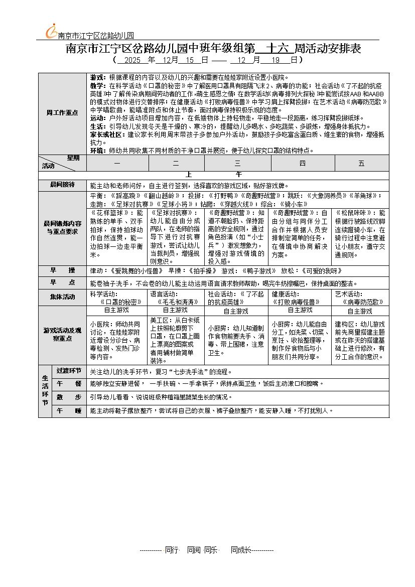 当前位置┃网站首页 > 家园共建>周活动安排> 文章