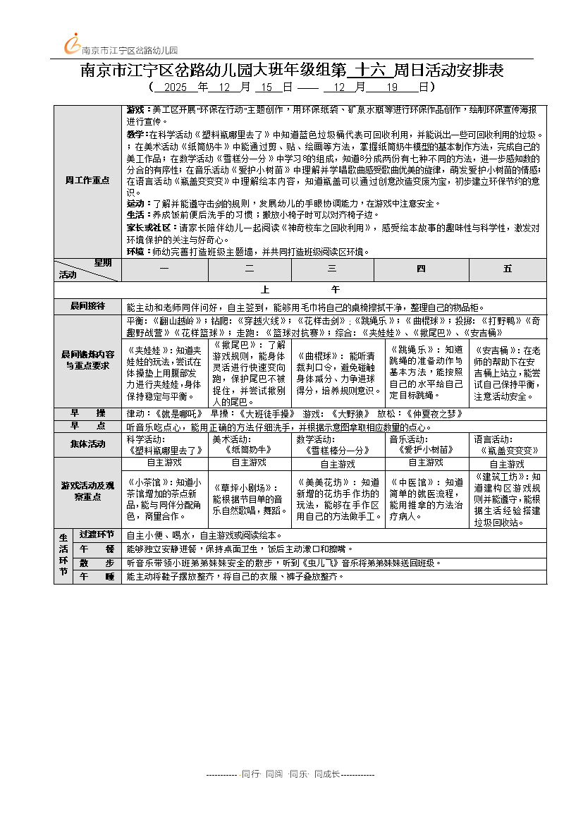 下一篇(大班)2025-2026-1第17周幼儿活动安排