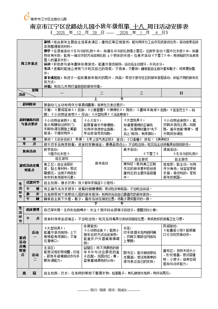 下一篇(中班)2025-2026-1第18周幼儿活动安排